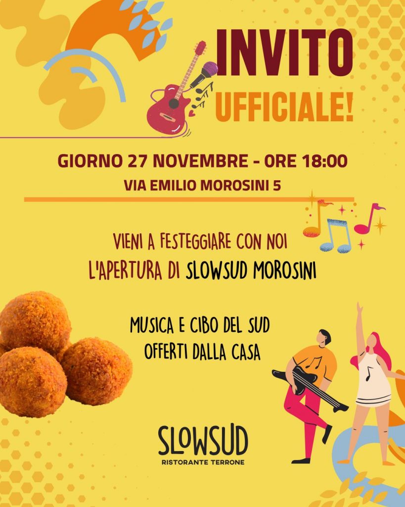Giovedì 27 novembre alle 18:00 apriamo ufficialmente le porte di SlowSud Morosini in via Morosini 5, Milano⦠e facciamo le cose come si deve: